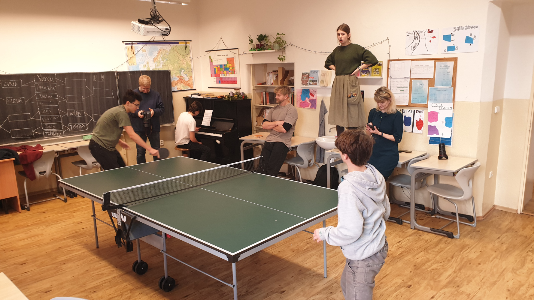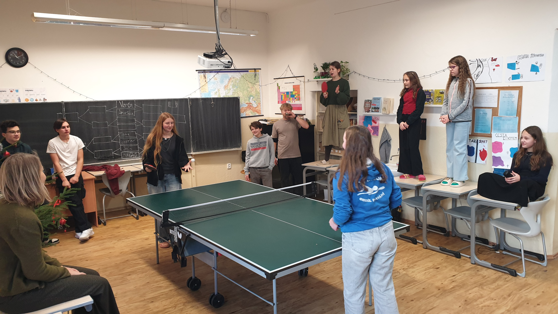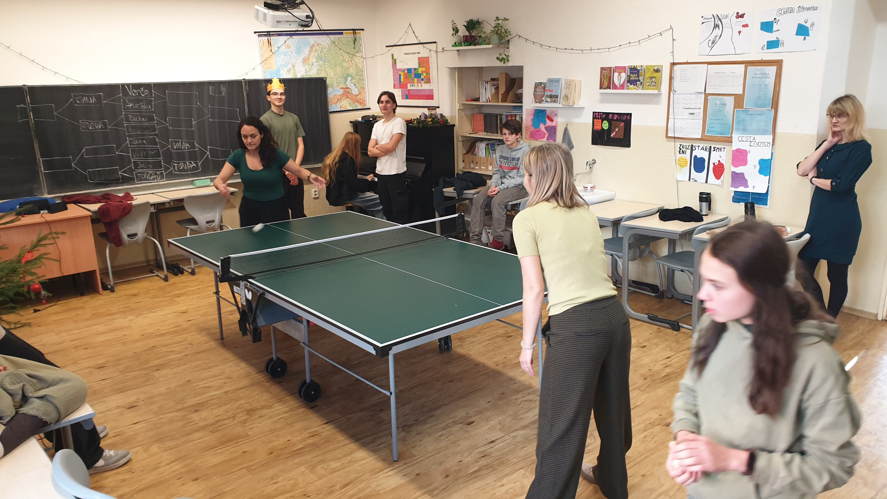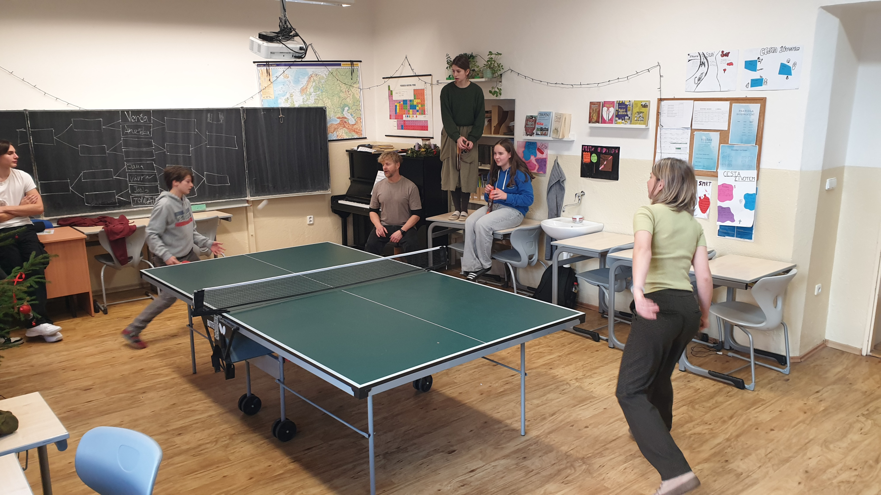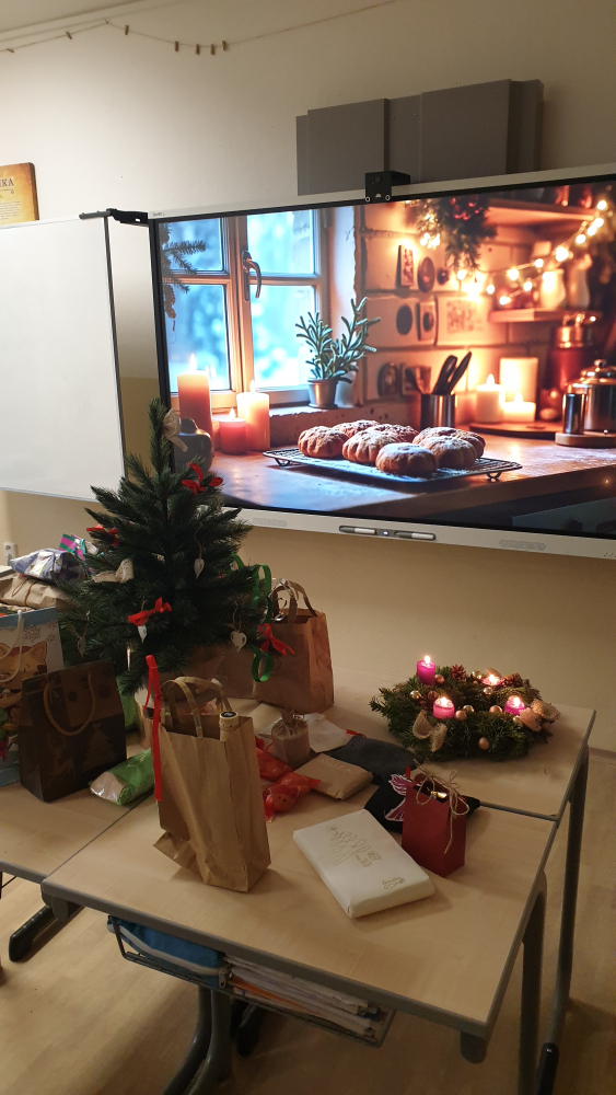 V posledním týdnu před Vánocemi jsme měli opravdu velkou nemocnost mezi žáky i mezi učiteli, ale i tak jsme si předvánoční čas užili. Byli jsme na Rorátní mši v kostele Narození Panny Marie v Táboře na náměstí Mikuláše z Husi, ve škole jsme uspořádali pinpongový turnaj a v pátek jsme si rozdali dárečky ve třídě a zahráli si různé deskovky.