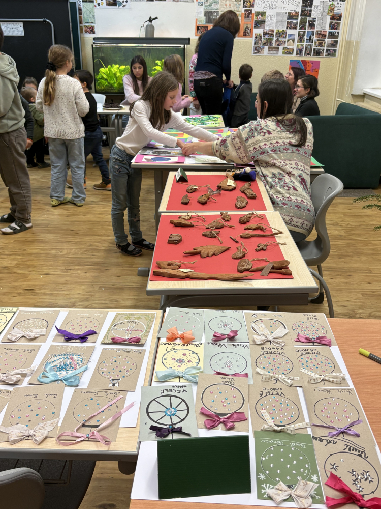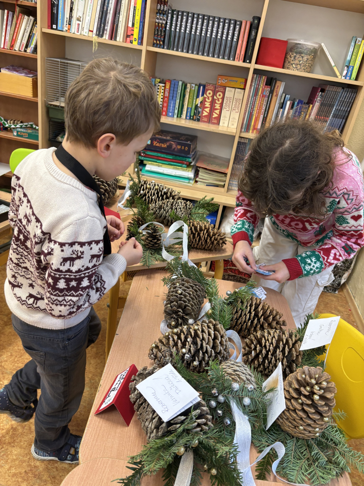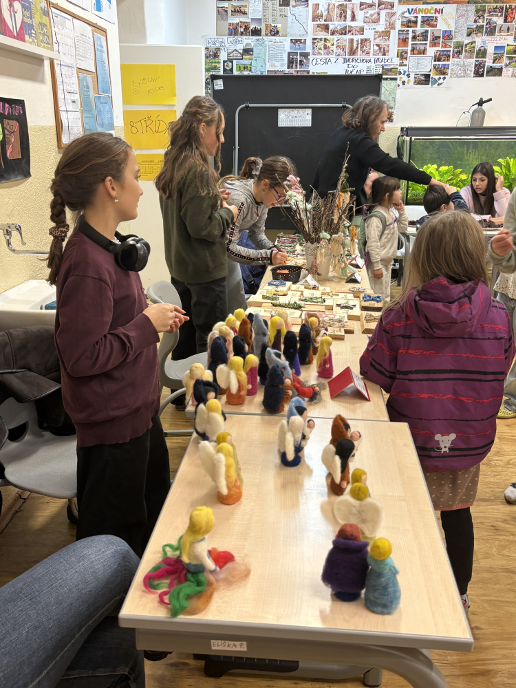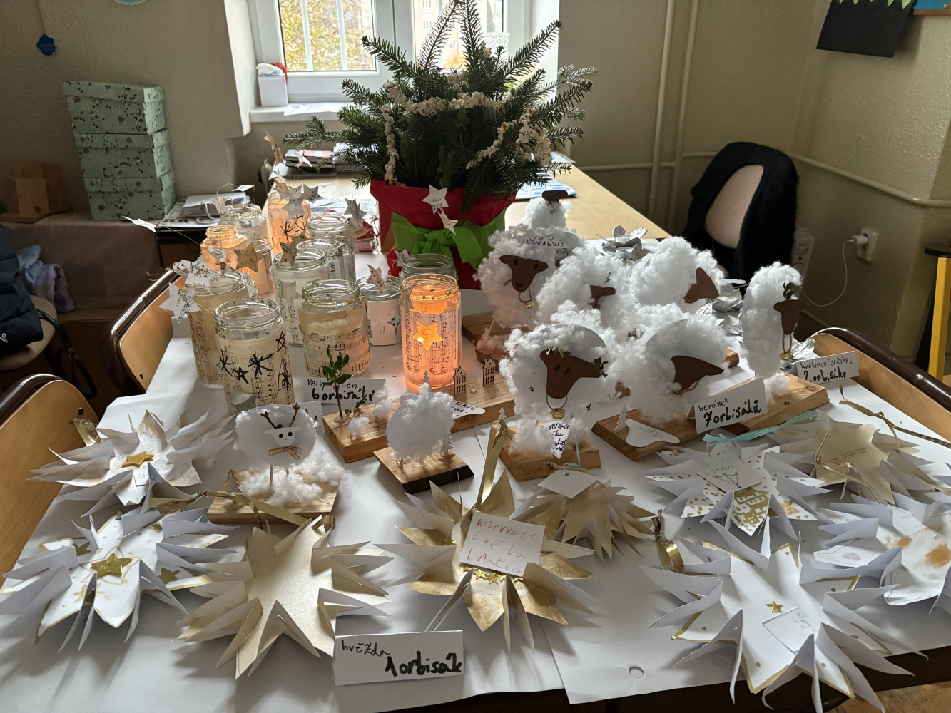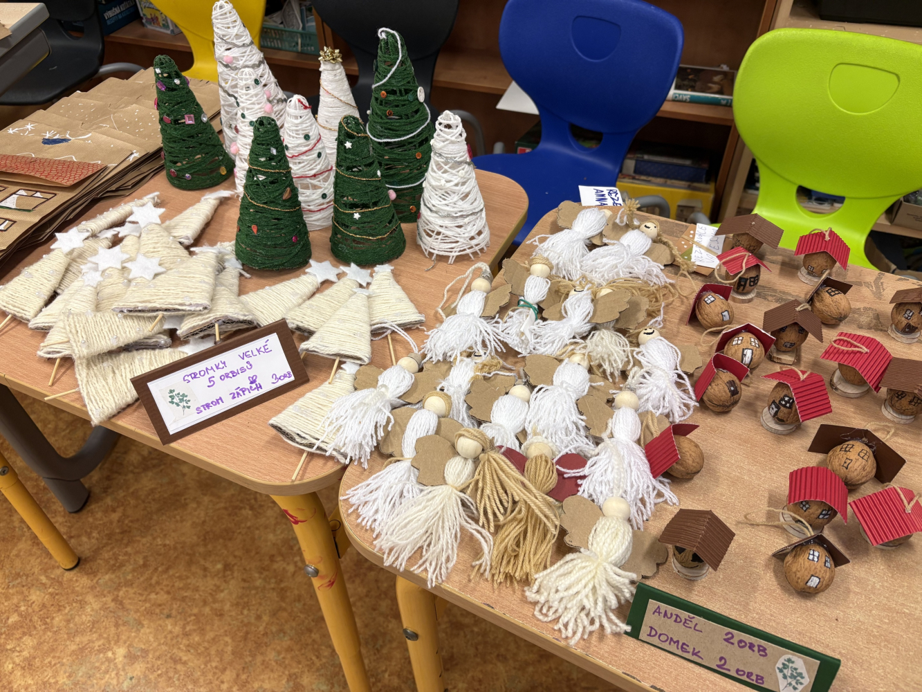 Výrobky, které byly k vidění, zhotovily děti 1. - 8. třídy. Na jejich realizaci bylo použito mnoho přírodních materiálů, textilu, papíru, vlny, skleniček, korálků a ozdob. Hodně se stříhalo, řezalo, brousilo, malovalo a lepilo.