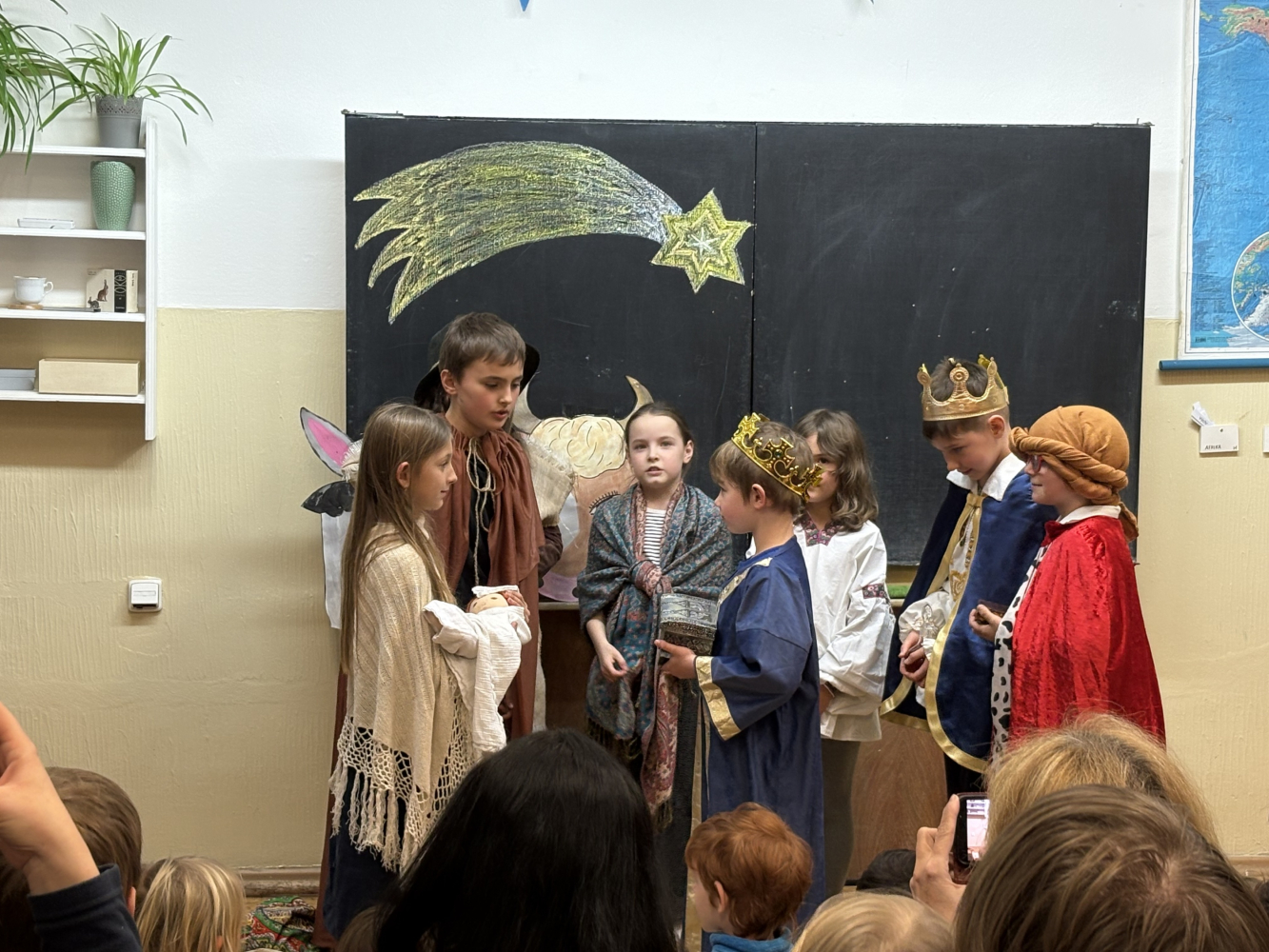 Součástí jarmarku bylo také divadelní představení třeťáčků a minikoncert druháčků. Děkujeme všem za účast, podporu a organizaci.