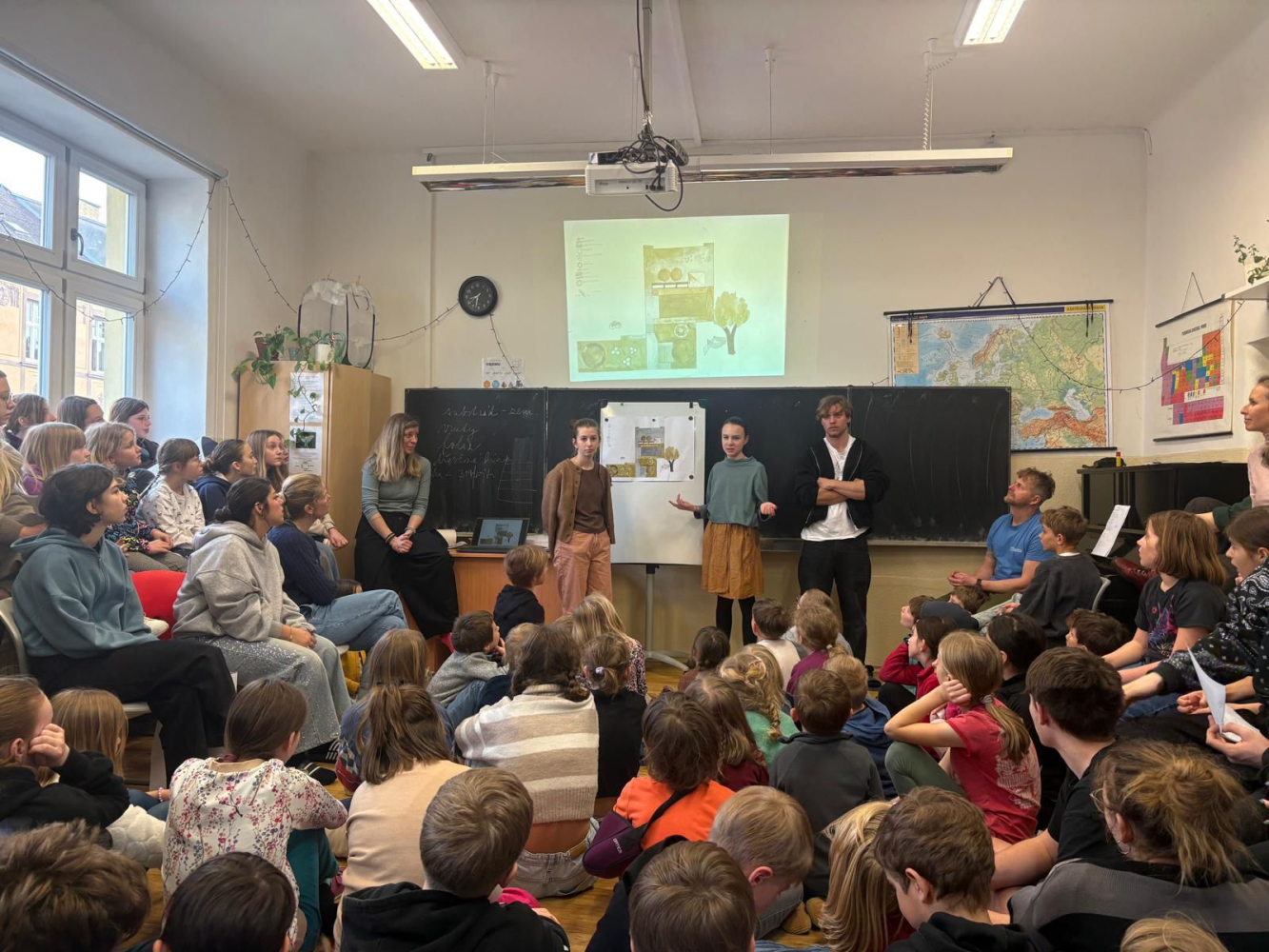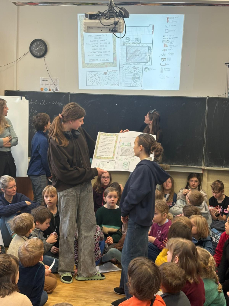 V průběhu března se naše škola zapojila do celoškolního projektu Probouzíme zahradu. Žáci nejprve pozorovali a analyzovali stav stávající školní zahrady, poté si ji sami měřili, zakreslovali její půdorysy a přemýšleli nad tím, jaké změny by si v ní přáli. Každá třída navrhovala vlastní nápady a nakonec vznikla společná vize naší budoucí zahrady. Tu pak jednotlivé třídy představily při společném setkání celé školy. Na konci března navíc proběhlo celoškolní hlasování o prvcích, které by se měly na zahradě objevit. Teď už se můžeme těšit na dubnovou realizaci a na to, jak se naše společné nápady postupně promění ve skutečnost.