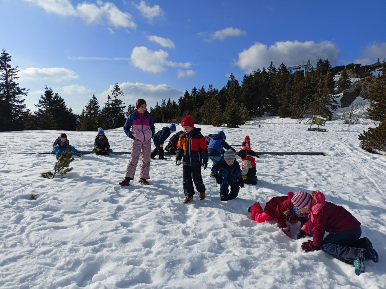 První březnový týden jsme si užili společně s první třídou na horách. Lyžovali jsme na Velkém Javoru a statečně se podle svých individuálních schopností pouštěli i na červené sjezdovky. Počasí nám vskutku přálo a také středeční procházka okolo vrcholu Javoru se velmi vydařila.