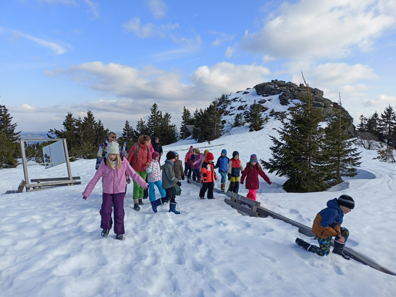 První březnový týden jsme si užili společně s první třídou na horách. Lyžovali jsme na Velkém Javoru a statečně se podle svých individuálních schopností pouštěli i na červené sjezdovky. Počasí nám vskutku přálo a také středeční procházka okolo vrcholu Javoru se velmi vydařila.