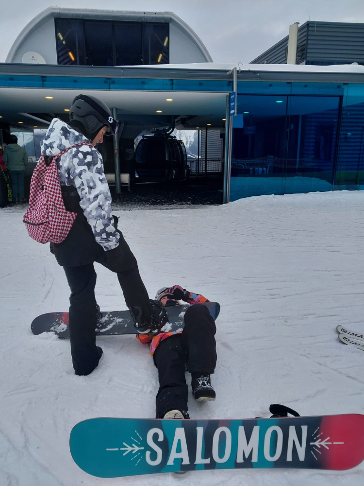 Dnes jsme vyrazili na sjezdovky v Reiteralmu. Začalo nám proměnlivě sněžit a foukat, a proto z dneška máme velmi málo fotografií. Děti, které skončily dříve na sjezdovce, vyrazily na procházku po Pruggernu. Po večeři si někteří z nás ještě dopřáli bazén ve Schladmingu.