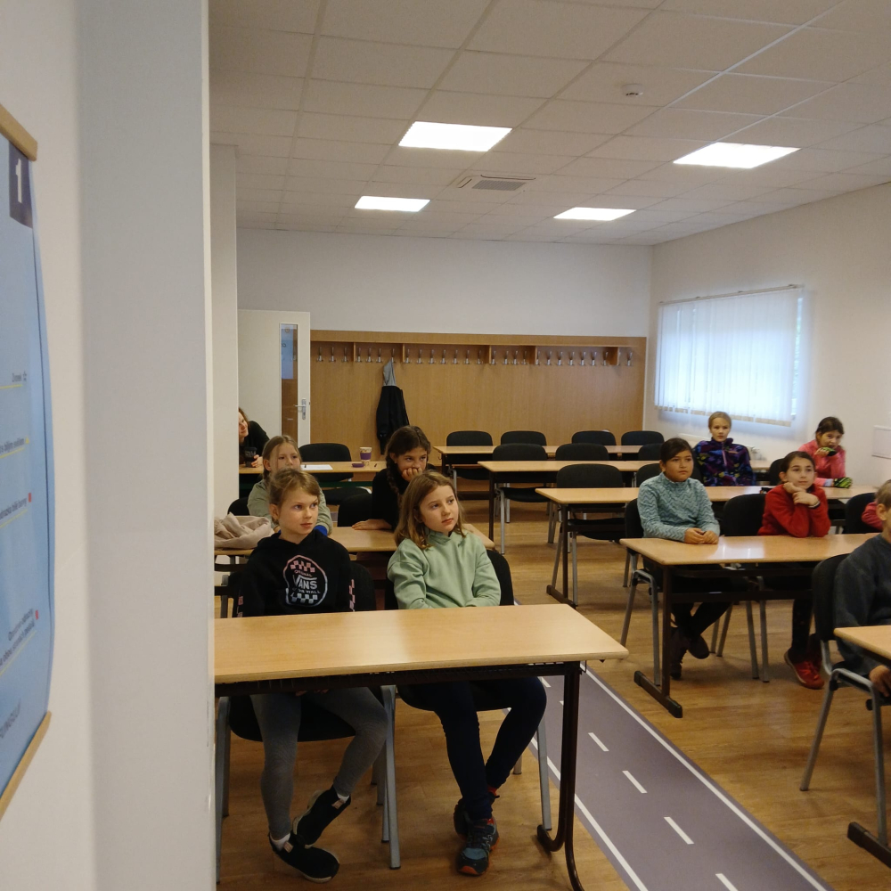 Absolvovali jsme dnes základní lekci dopravní výchovy. Jsme poučeni o pravidlech silničního provozu a vyzkoušeli jsme si, jaké to je, být cyklistou na pozemní komunikaci.“
