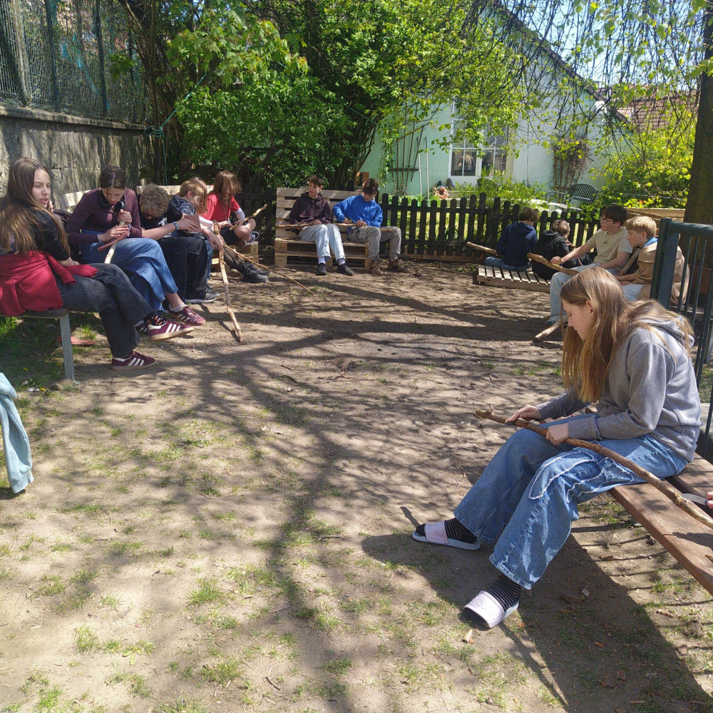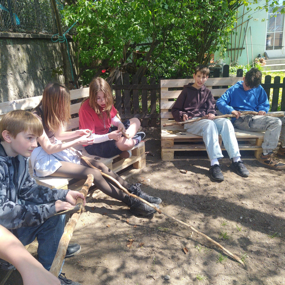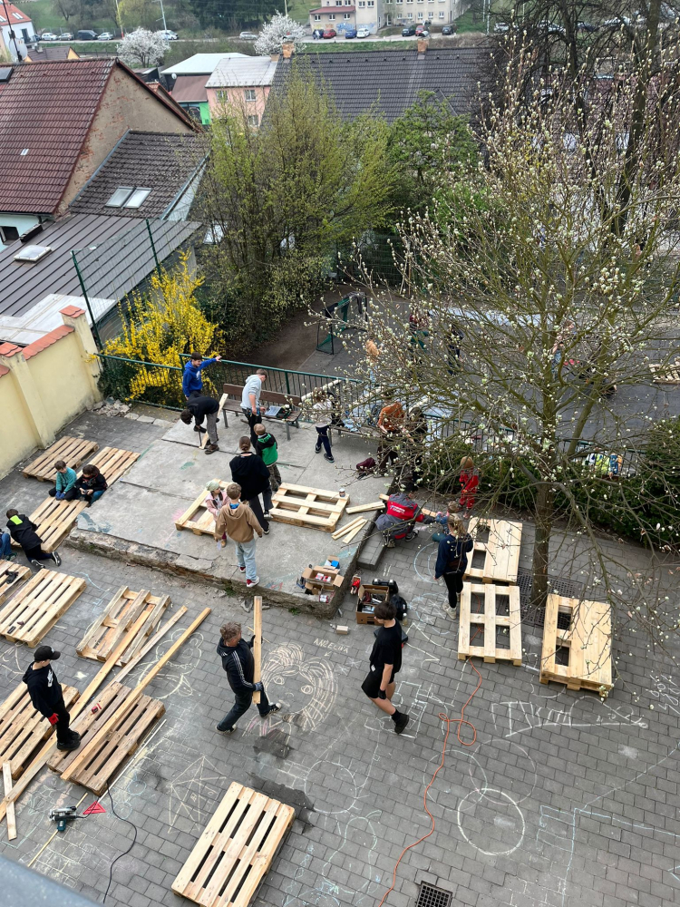 Následně jsme se naplno věnovali našemu venkovnímu projektu „Probouzíme zahradu“, na kterém se podílela celá škola. Žáci měli možnost zapojit se do různorodých aktivit a pro mnohé to byla i nová zkušenost – vyzkoušeli si například šití, výrobu hmyzího domečku, krmítek nebo ptačích budek. Nechyběla ani fyzická práce, při které si pořádně protáhli tělo při práci s krumpáči, lopatami či rýči. Další fotografie z této akce naleznete na našem webu v aktualitách.