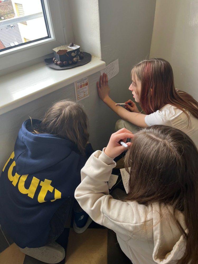 Tento měsíc jsme si nejprve zpestřili velikonoční čas anglickým Egg Huntem – žáci po škole hledali schované otázky, za jejichž správné vyřešení získávali kód potřebný k rozluštění závěrečné křížovky.