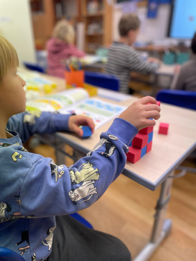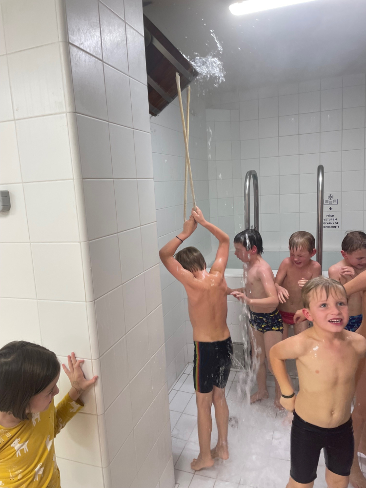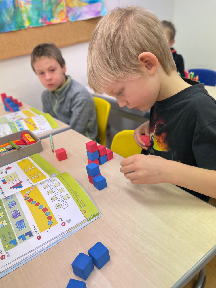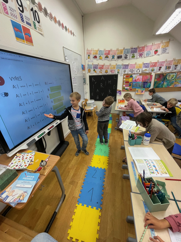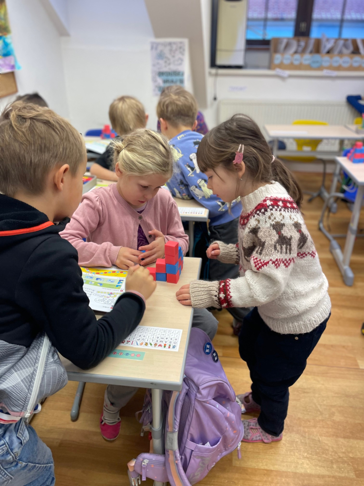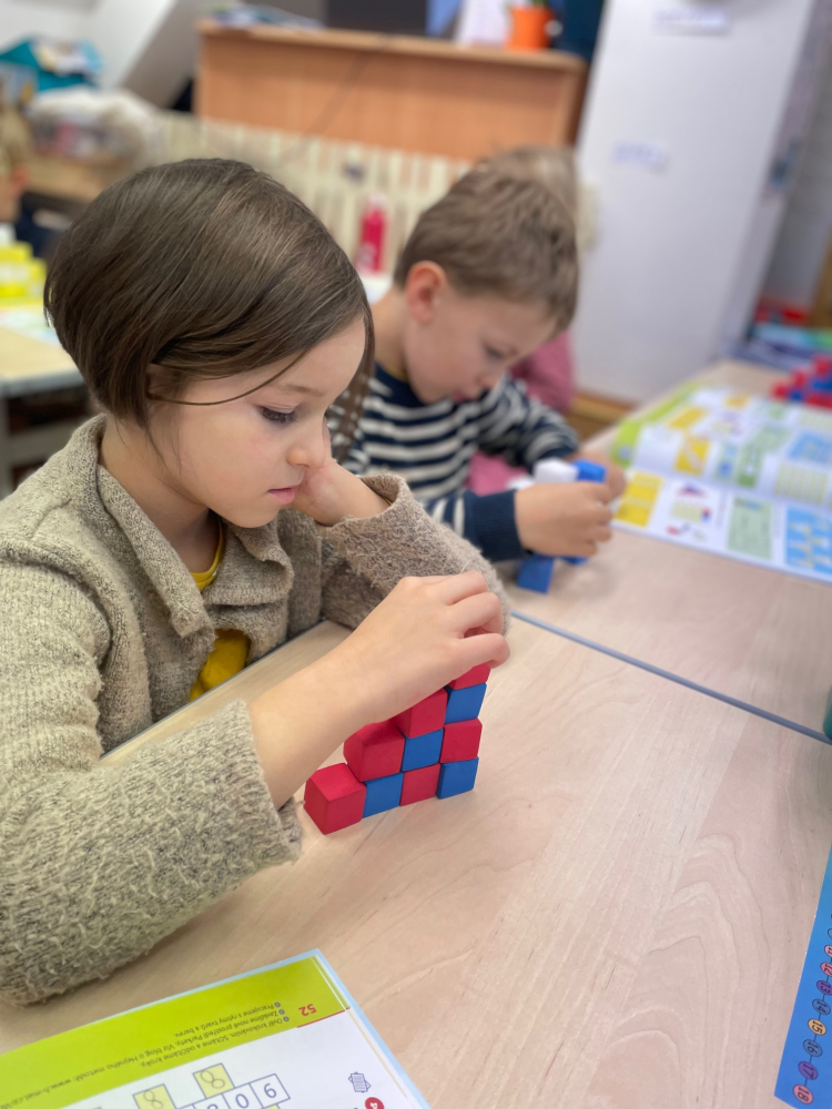 I v listopadu pokračoval plavecký výcvik. Z malého bazénu se lekce přesunuly do velkého a většina dětí se v plavání obrovsky posunula. Po minulé lekci jsme vyzkoušeli, jaké je to být v páře. V matematice jsme se v listopadu věnovali novému prostředí - Krokování. Zeptejte se dětí, co je to krokovací pás a co s ním děláme. Společně děti vyřešili i některé obtížné úlohy z prostředí krychlových staveb.