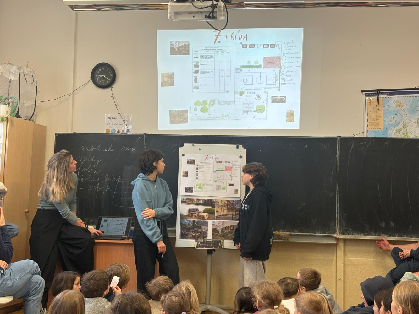 V úterý 24/03 se při unikátním "společňáku" sešla tentokrát celá škola. Děti si vzájemně meziročníkově představovaly své návrhy k projektu Probouzíme zahradu. Nyní probíhá hlasování k jednotlivým navrhovaným prvkům a pak vznikne jedno společné dílo, které během dubna zrealizujeme. Už se na to moc těšíme!