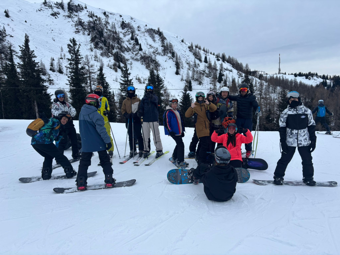 Pobyt na horách jsme si užili od první do poslední chvíle. Bydleli jsme na chatě v Pruggernu a každý den jsme sbírali zážitky na sjezdovkách v okolních areálech – lyžovali i jezdili na snowboardu, posouvali se v našich dovednostech a užívali si krásné široké tratě. Nechyběl ani výlet na Dachstein a společné chvíle mimo svah – procházka po Pruggernu nebo večerní relax (dovádění) v bazénu ve Schladmingu. Hlavně ale panovala skvělá nálada: hodně smíchu, zpěvu, her a radostí ze společně stráveného času. Na tenhle kurz budeme dlouho vzpomínat.