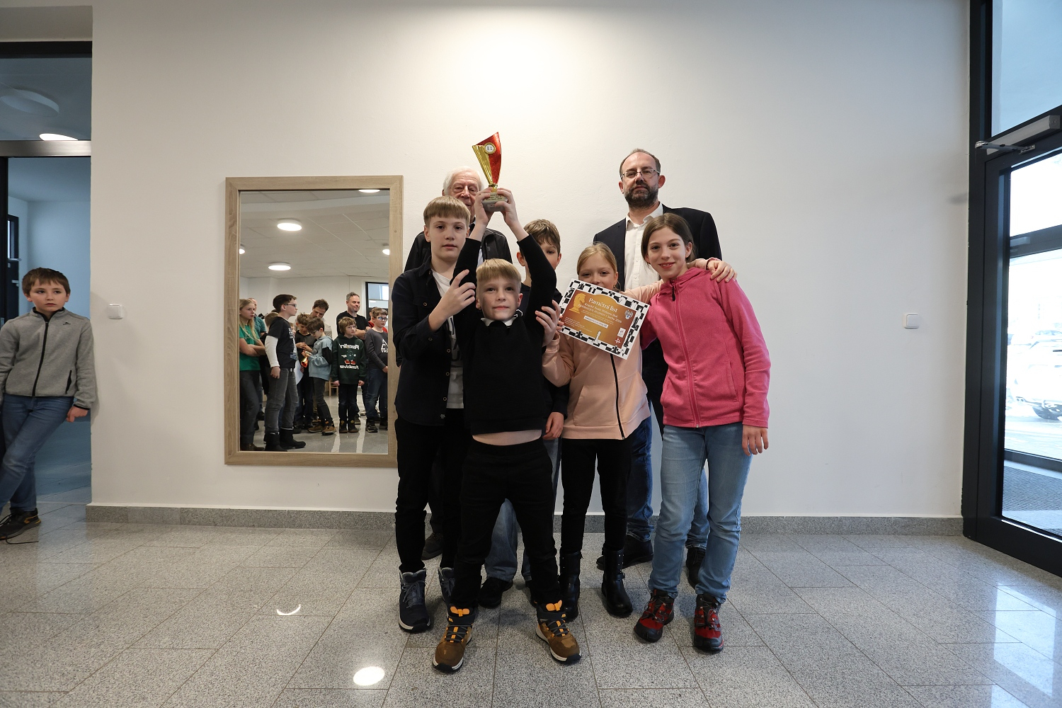 Ve středu 18. února se konalo krajské finále Přeboru škol čtyřčlenných družstev v Nových Hradech. Z naší školy se účastnilo družstvo 1. i 2. stupně. Druhostupňoví žáci skončili ve velké konkurenci převážně víceletých gymnázií na 12. místě. Prvostupňoví žáci obsadili 2. místo a postupují na Mistrovství České republiky školních týmů v šachu.