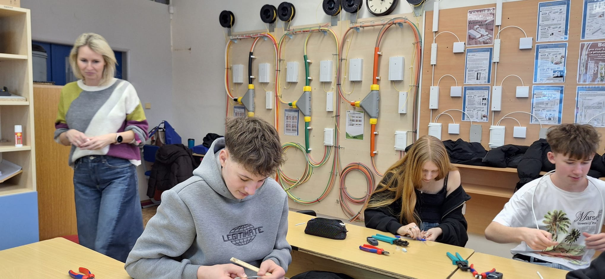 Dnes se naši osmáci a deváťáci zúčastnili Technických dnů na SŠSI (Střední škola spojů a informatiky) v Táboře. Žáci měli možnost se podívat na středoškolskou půdu a na vlastní kůži si vyzkoušeli zajímavé aktivity. Dětem se tu moc líbilo a třeba se díky této zkušenosti rozhodnou právě pro tuto střední školu.