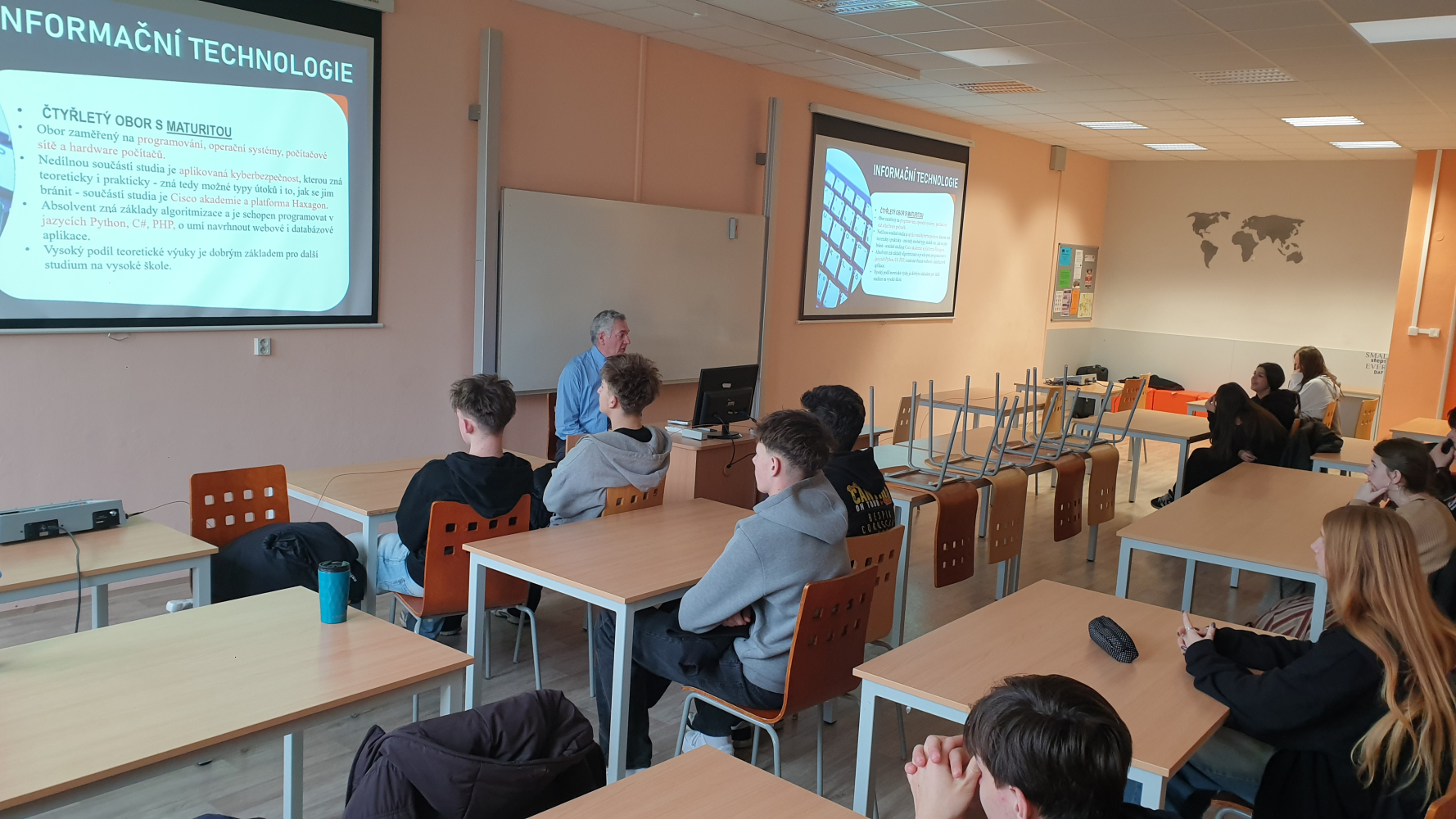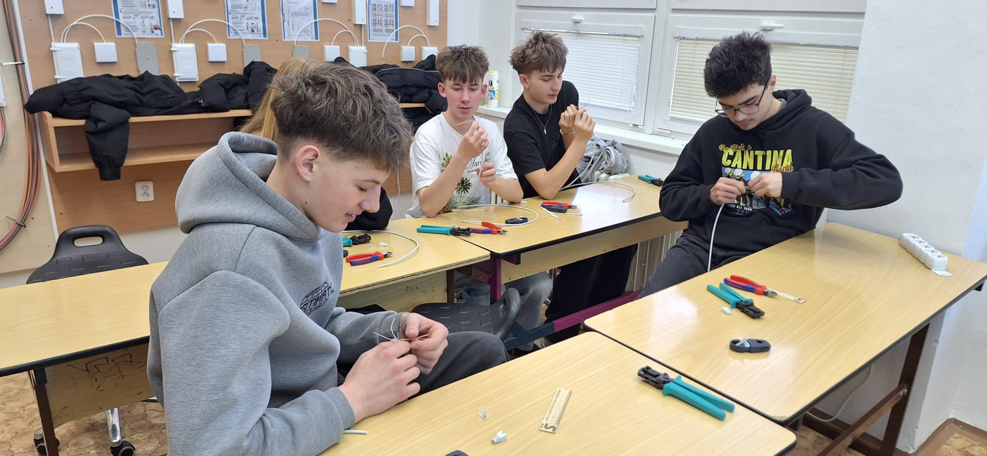Ve středu 11. 2. 2026 jsme se s osmou a devátou třídou zúčastnili tzv. „Technických dnů 2025/26“ na Střední škole spojů a informatiky v Táboře. Dozvěděli jsme se, jak škola funguje, jaké obory nabízí, čím vším se mohou její absolventi v budoucnu zabývat. Dozvěděli jsme se například, jak funguje optický kabel, pár zajímavých informací o zvuku, zkoušeli jsme odstraňovat ochranný plášť z kabelů, a také jsme si vyzkoušeli pracovat v grafickém softwaru Gimp.