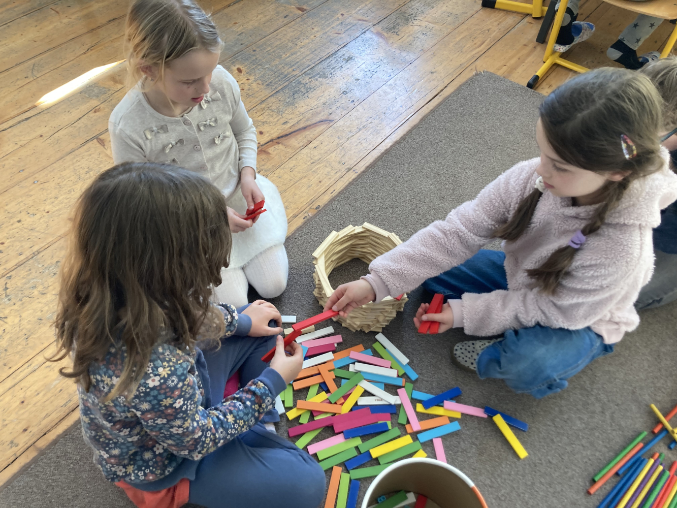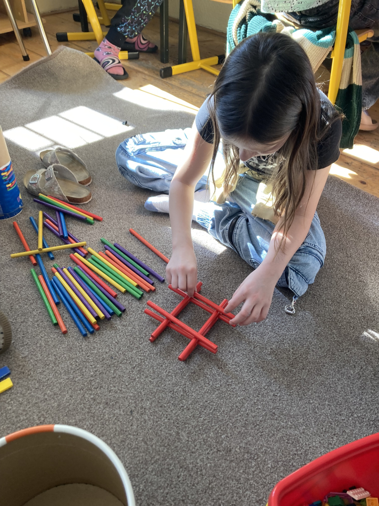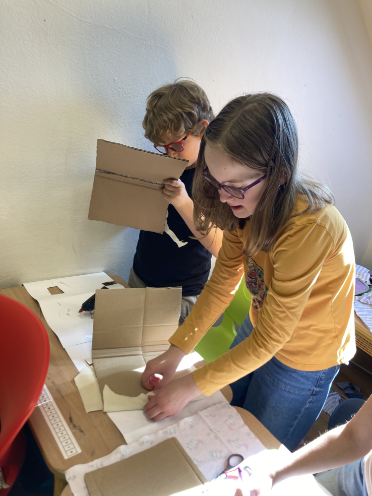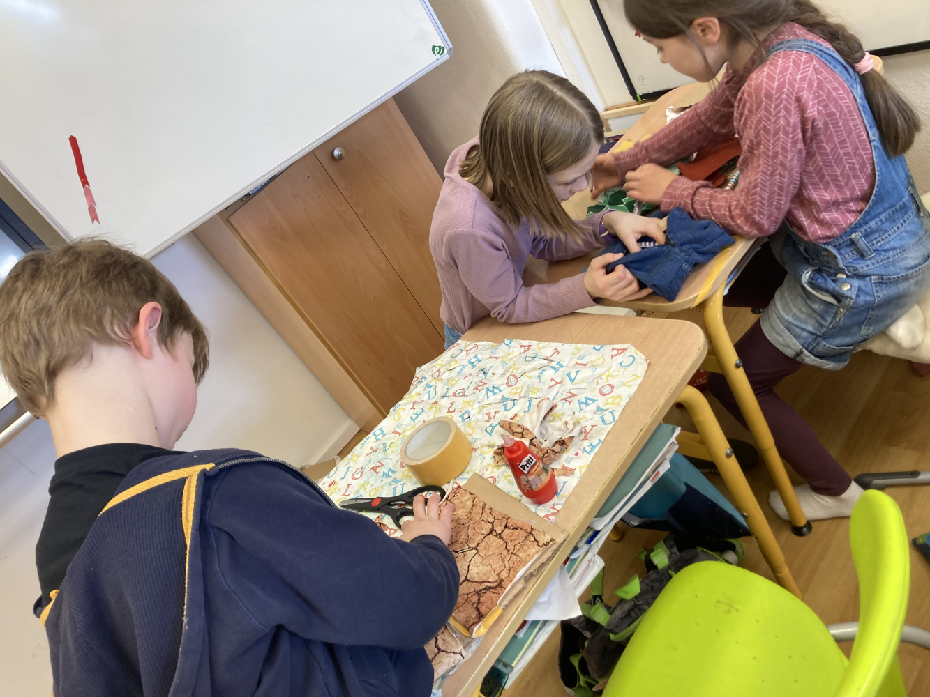 V hodinách výtvarné výchovy a pracovních činností jsme někteří využili družinkové stavebnice a také jsme si vyrobili látkou polepené desky na sešit či budoucí knihu.