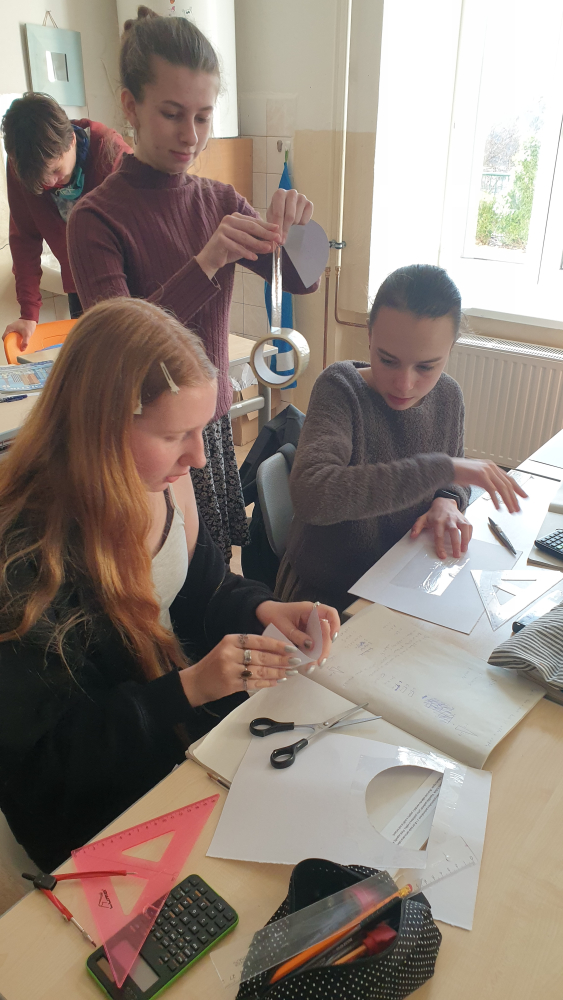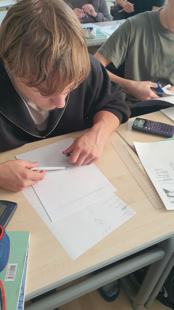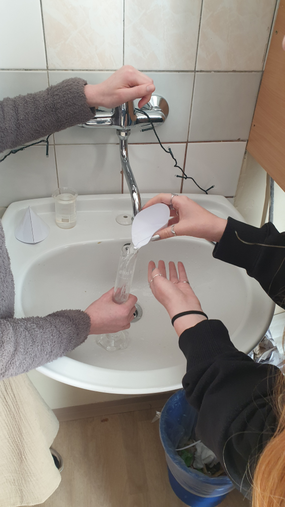 V hodině matematiky jsme měli za úkol vyrobit nálevku na vodu ve tvaru kužele z půlkruhu o daných rozměrech, a poté změřit a ověřit výpočtem, kolik vody tato nálevka pojme.